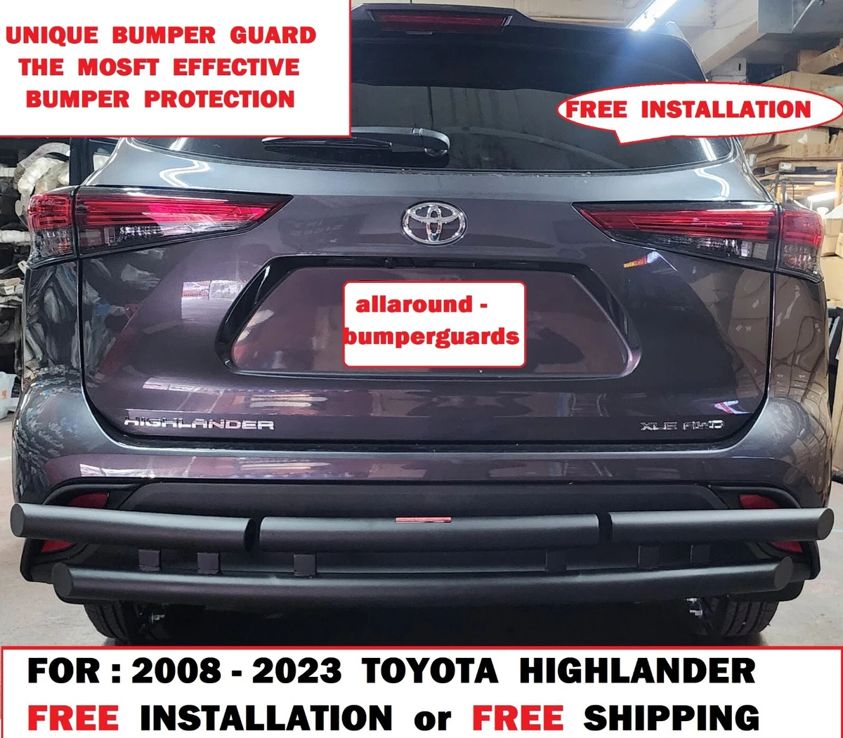FOR : 2008 2024 TOYOTA HIGHLANDER. BLACK UNIQUE FULLY REAR BUMPER